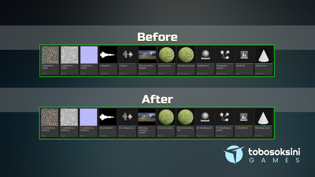 Designed to align with Epic Games’ recommended asset naming conventions, this tool ensures every asset follows a structured, predictable, and scalable format, so your project always looks like a single, cohesive creation, no matter how many contributors are involved.